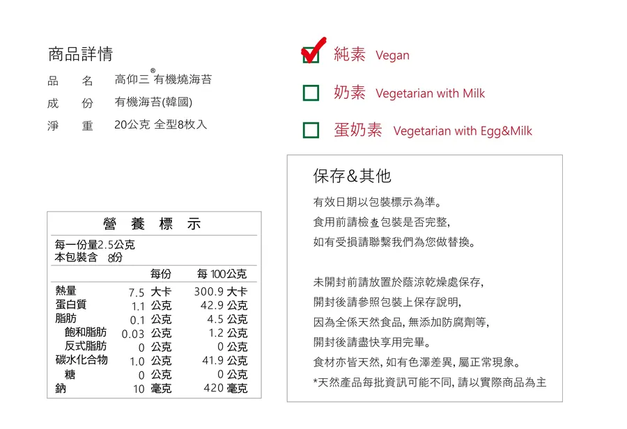 成 份:有機海苔